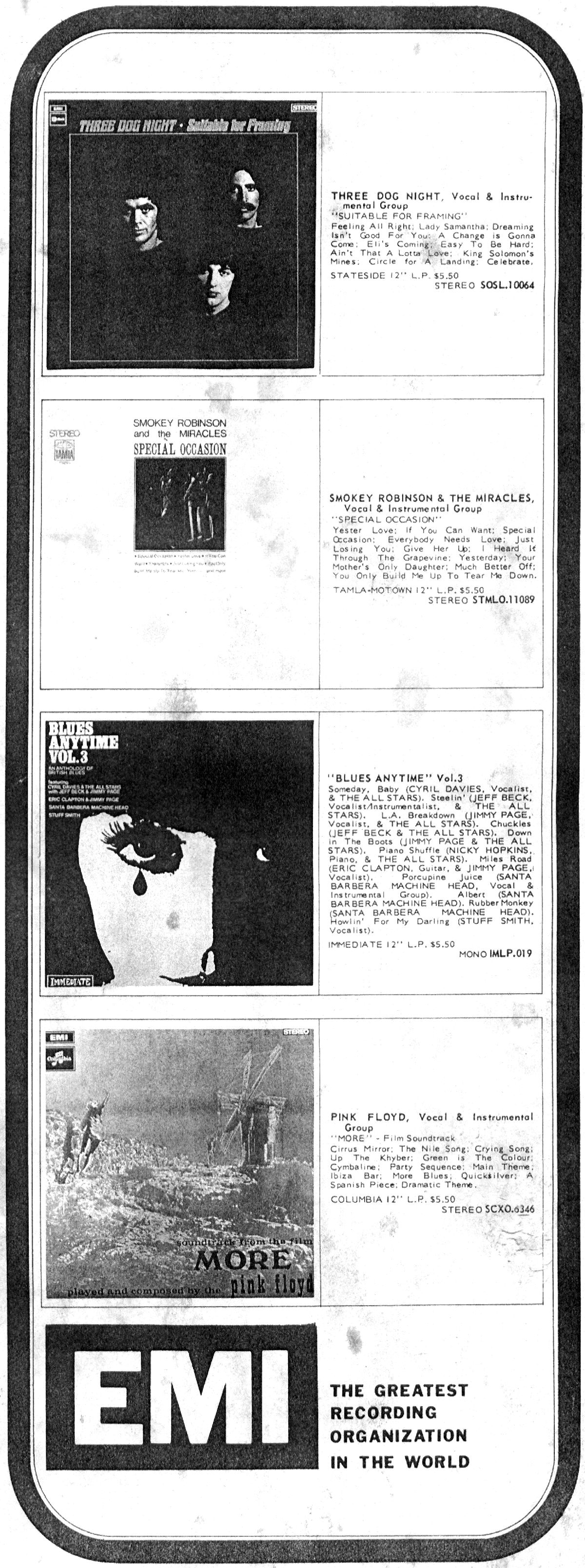 While being the third Pink Floyd album released in the UK, More was the first Pink Floyd album released in Australia. The catalyst for its release is unknown, although it's likely that being a soundtrack, EMI Australia assumed a parallel (or as near parallel as possible in Australia!) theatrical release.
